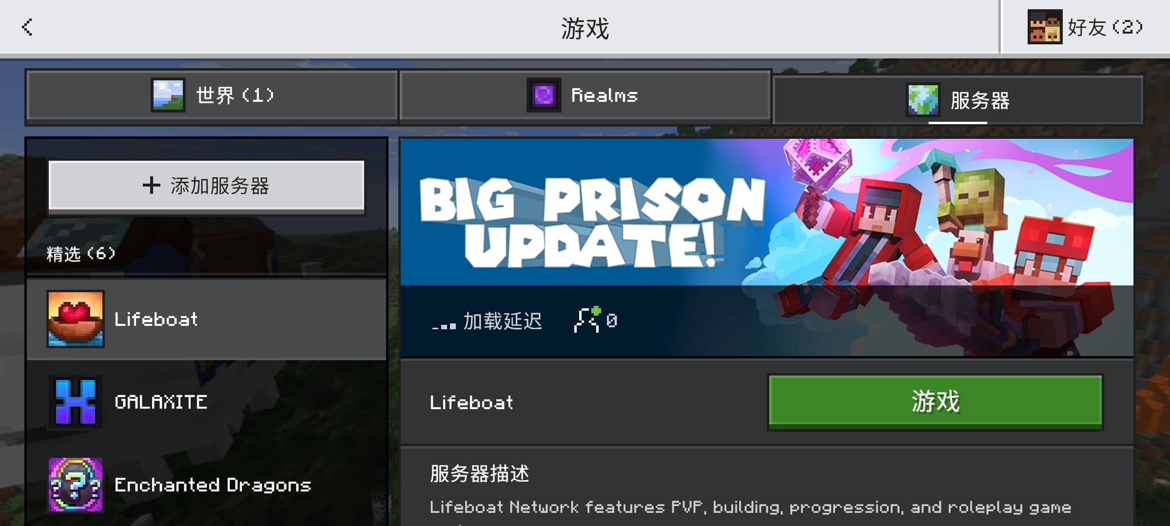 - 在游戏列表就可以看到在线服务器了,双击即可加入